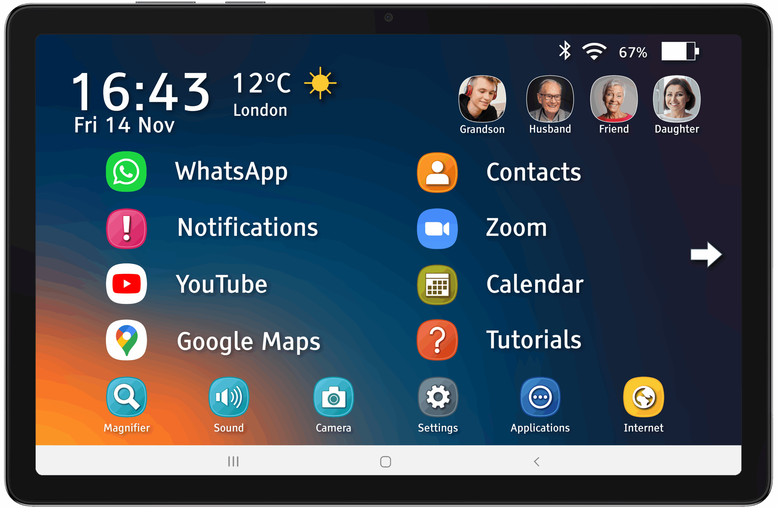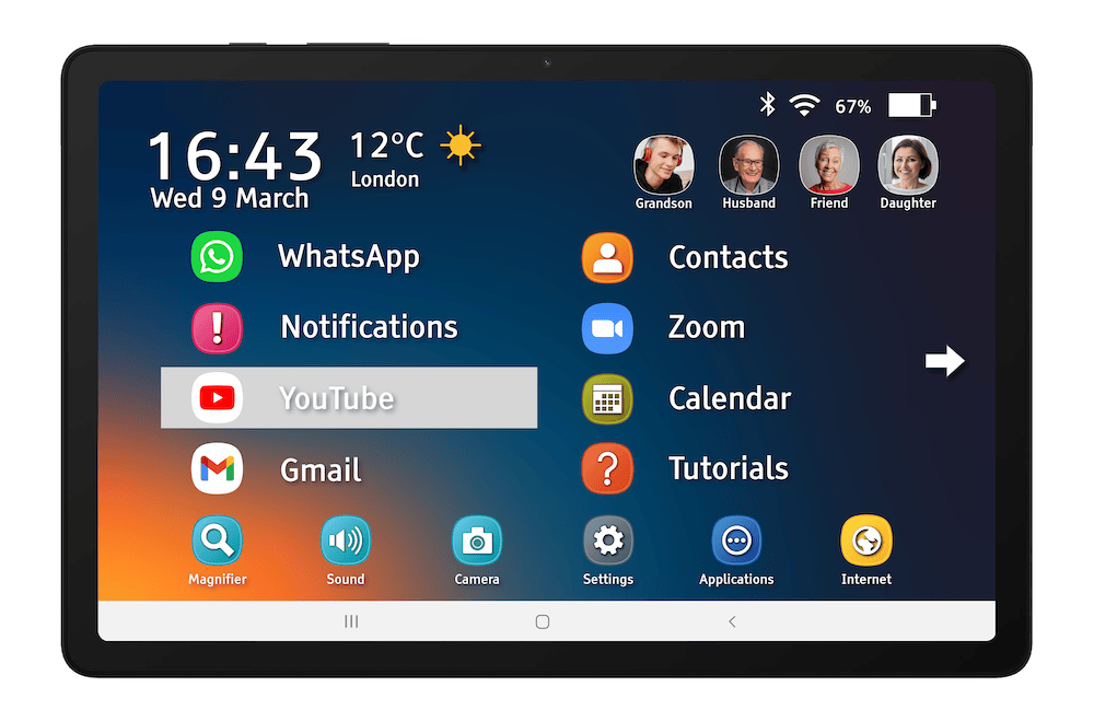 The Samsung Easology tablet has been designed with you in mind and is packed full of useful and assistive features. A great example is the built-in magnifier for reading small text on leaflets and packages.