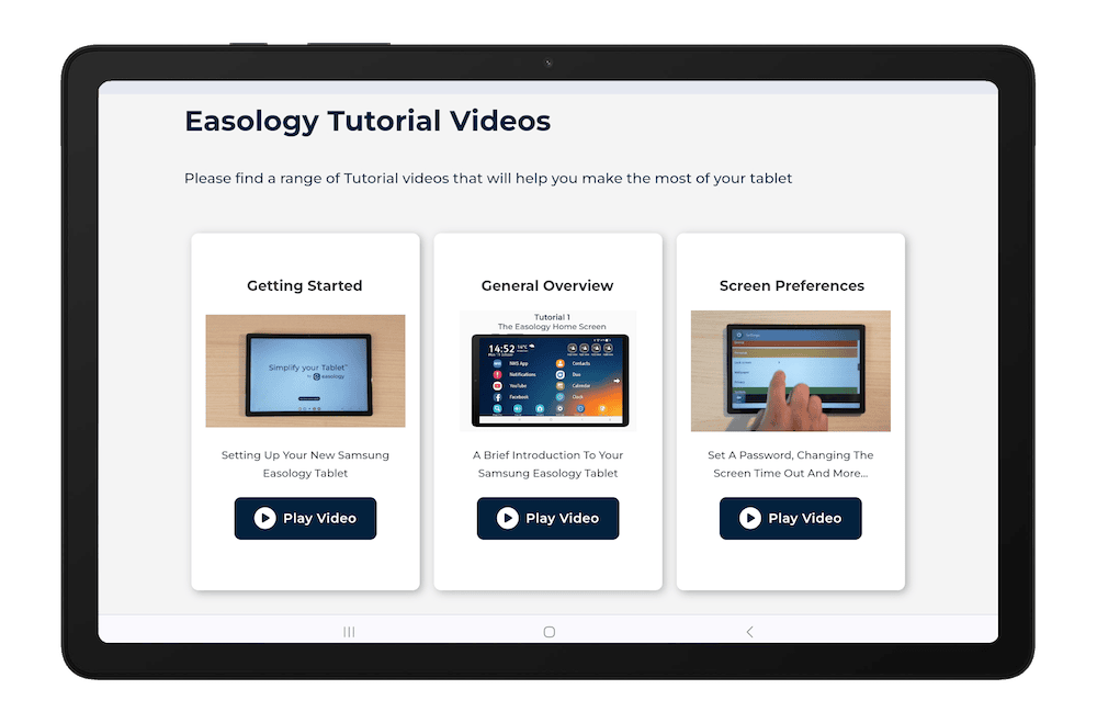 Get the most out of your tablet with a wide range of FREE Tutorial videos that you can access and watch on your tablet. Simply tap on the Tutorials icon to get started. There are videos to help you use your tablet, access the internet, download apps and much more.