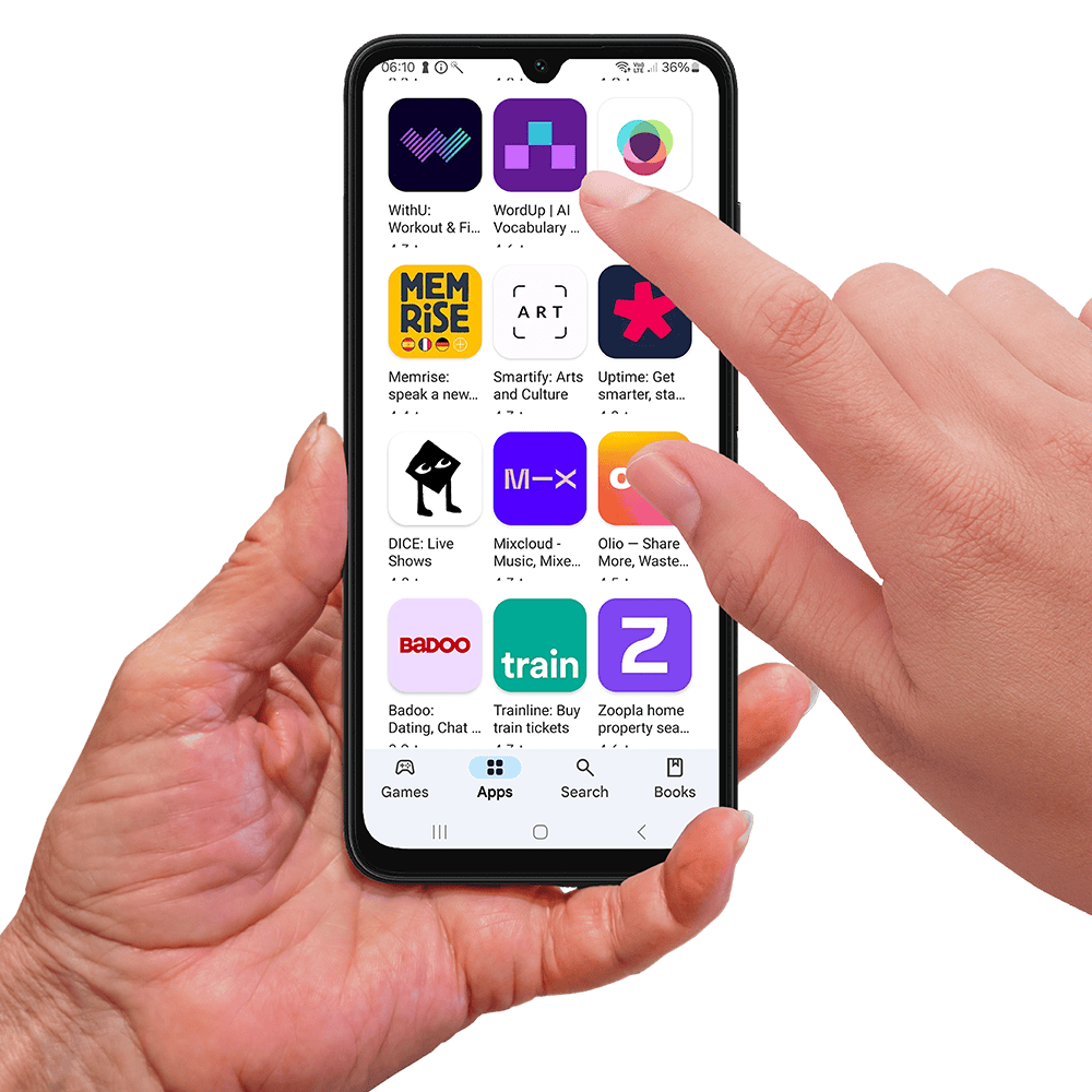 Download your favourite apps from the Google App Store and add them to your home screen. Whether it's WhatsApp, Facebook, Trainline or Sudoku, add your favourite apps to the home screen and put them in any order you wish.