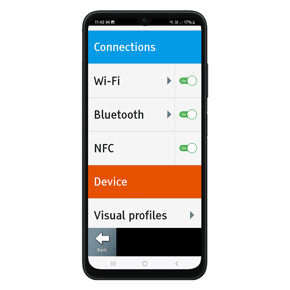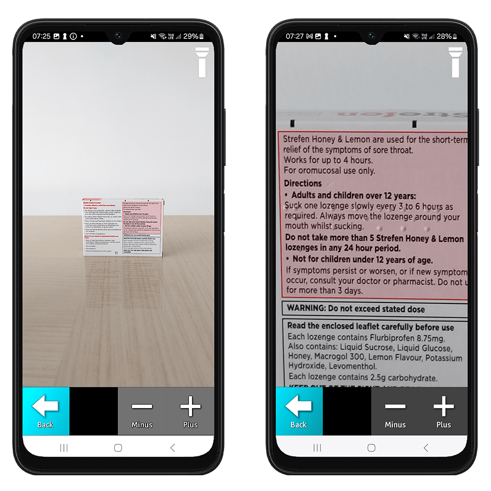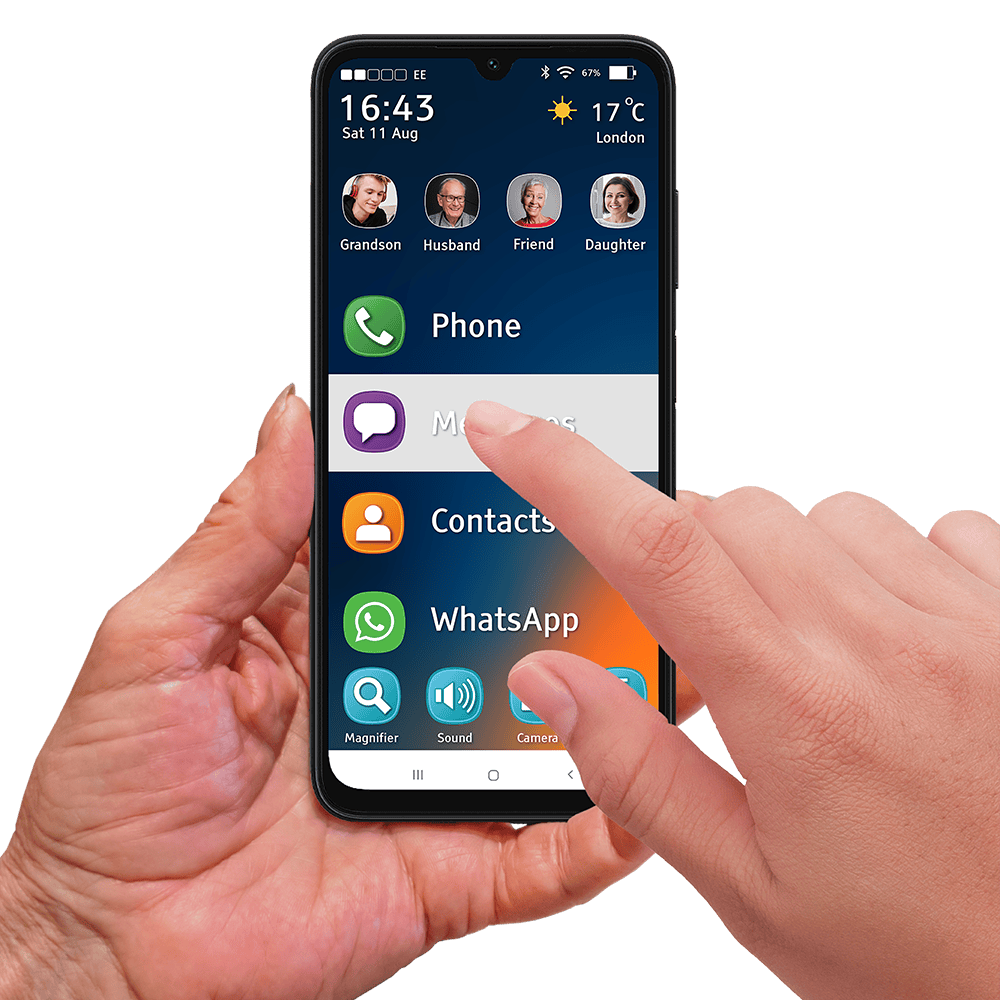 The Samsung Easology Smartphone has been designed with you in mind and is packed full of useful and assistive features. A great example is the built-in magnifier for reading small text on leaflets and packages.